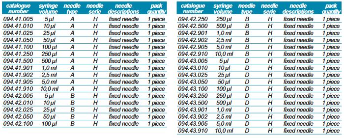 SYRINGES – “for dosage of gas & liquids” – “fixed needle” – “serie H”