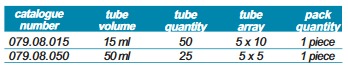 - 50 x 15 ml (5 x 10 array) centrifuge tubes